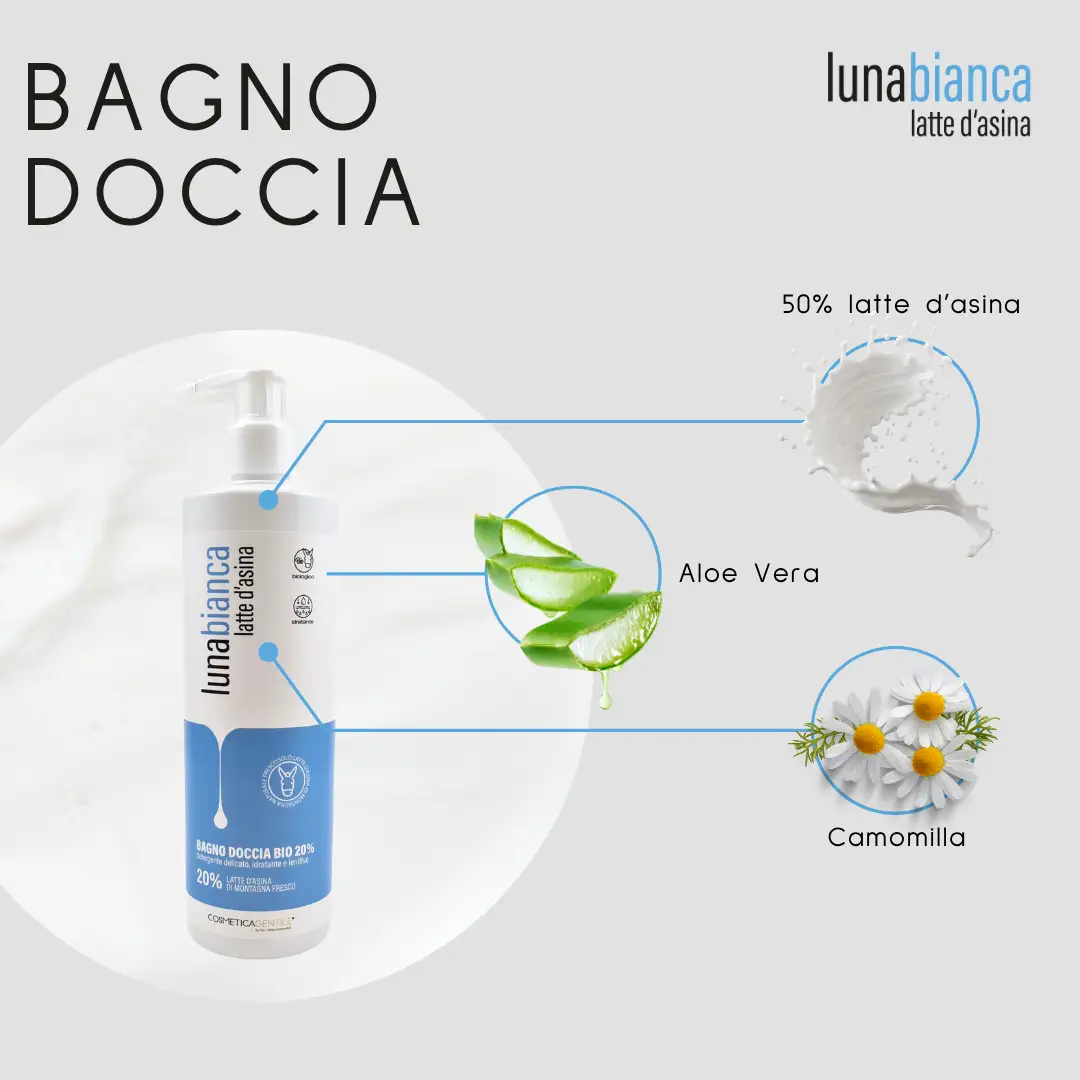Bagno doccia al latte d’asina 20% detergente idratante e lenitivo