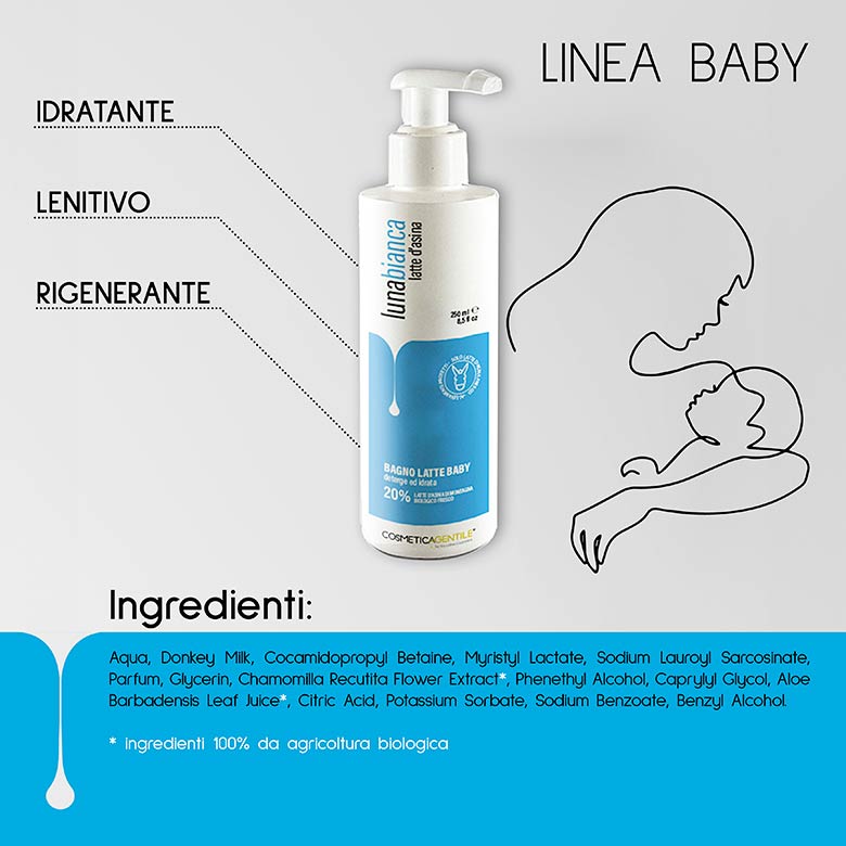 *I prodotti della linea baby sono indicati a partire dai 9 mesi, dopo la fase di svezzamento, per garantire la massima sicurezza e ridurre il rischio di allergie legate alla presenza di latte d’asina nei nostri ingredienti naturali.