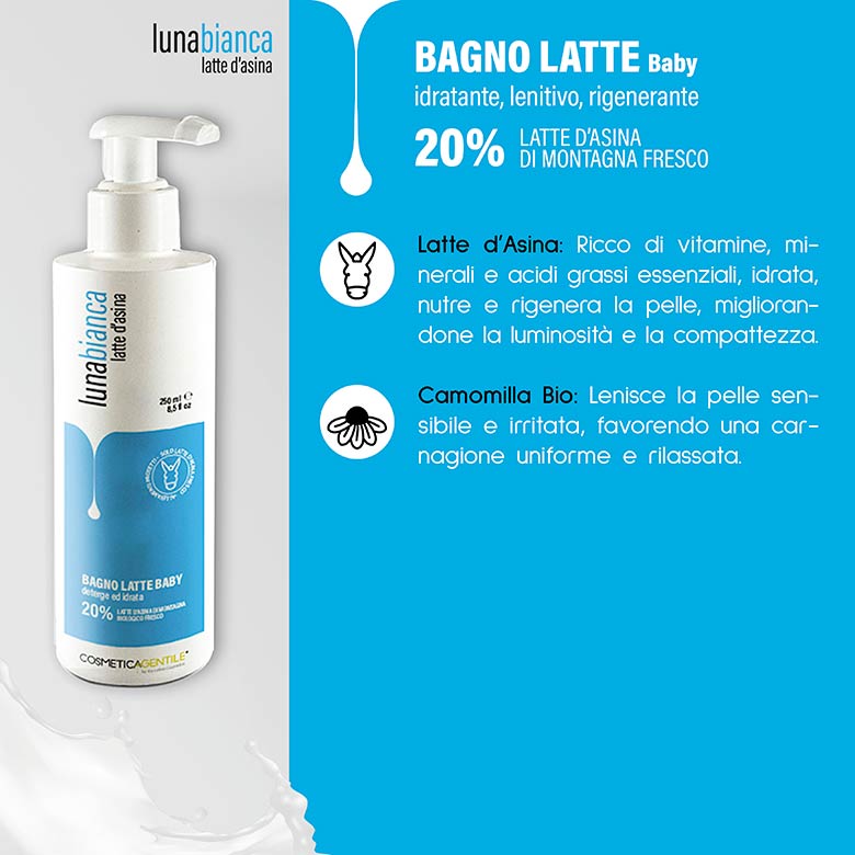 Principi attivi e benefici bagno latte baby al latte d'asina